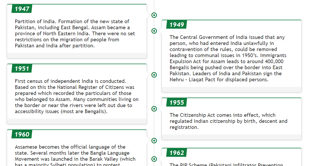 Partition of India, formation of the new state of Pakistan, included East Bengal. Assam became a province of North Eastern India. There was no set restrictions on the migration of people from Pakistan and India after partition.