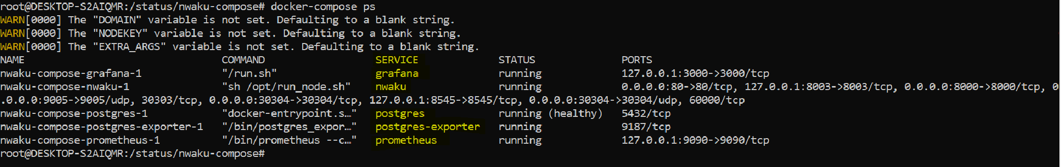 docker-compose logs -f nwakuIn general, to view logs of any service running on Docker Compose, execute: